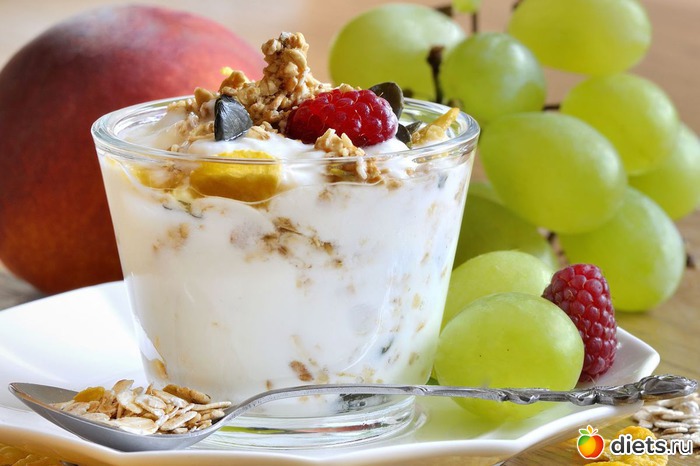 за завтраком творог и сухофрукты, это даст достаточно энергии, чтобы дожить до обеда без обязательной шоколадки на работе, кроме того, тебе будет сладко, а значит на дополнительные «сладкие призы» организм не потянет.