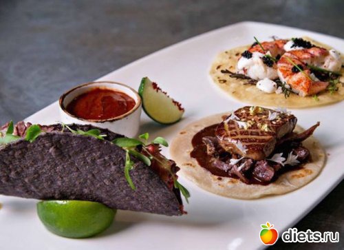 . И, наконец, третий вид тако готовится с американским омаром, зёрнышками икры и перцем чили Алеппо.
