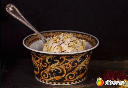 Само мороженое — это высококачественные мадагаскарские бобы ванили, покрытые итальянскими трюфелями, редким благоухающим иранским шафраном и 23-каратными съедобными золотыми хлопьями. Один шарик такого мороженого стоит 817 долларов, но хорошая новость в том, что вы можете оставить себе на память чашу и ложечку от Versace, которые сервируются к блюду. Потому что кто не захочет иметь воспоминания о том времени, когда живот толстел, а кошелёк быстро истощался?
