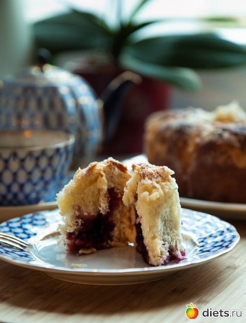 Это из немецкой кухни. Булочки с вишнёвым джемом, запечённые веночком.