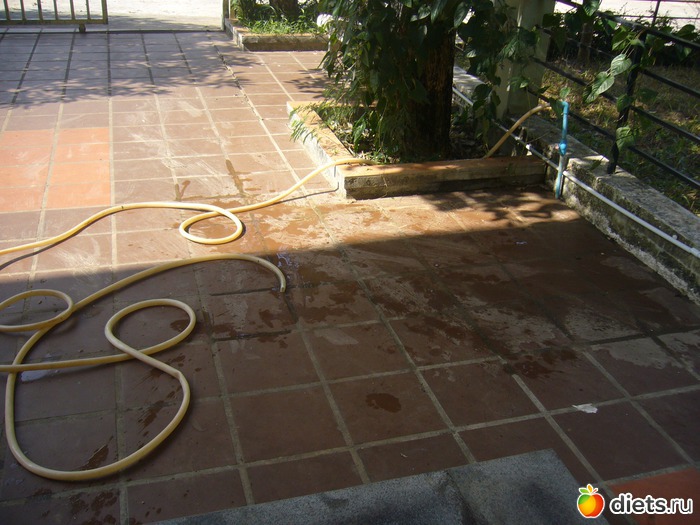 3. Вымыла плитку перед домом.
