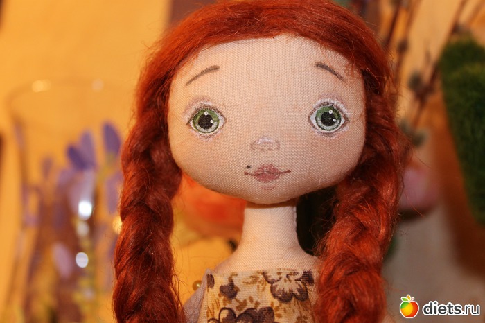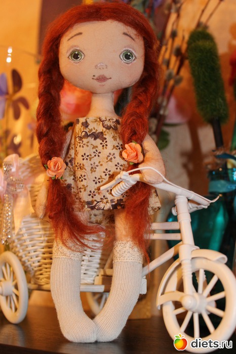 в общем: подрумянила личико, дорисовала глазки, сделала более живой взгляд, сшила винтажные гольфики с кружевами, сменила прическу, и сделала часть платьица))), имя ей дала Танюша