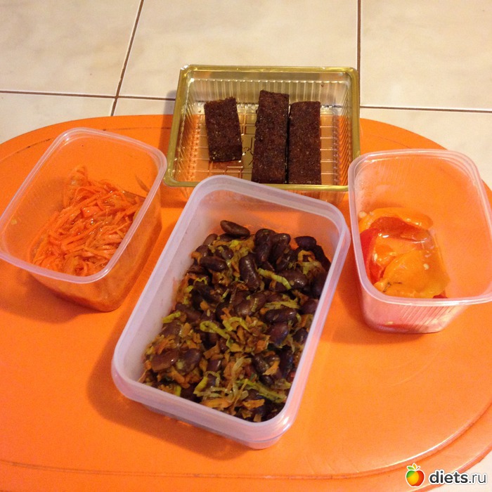 О. Отварная фасоль с луком и морковью+морковь по-корейски+марин.перец+отвар от фасоли+чесночные гренки