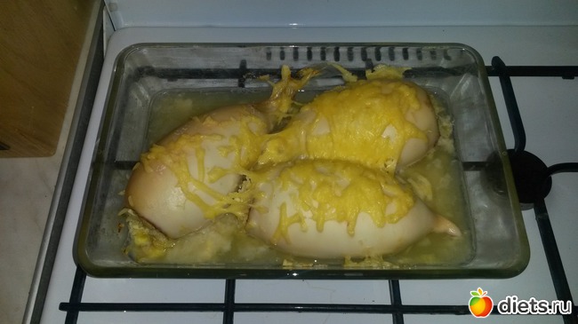 . В общем, нафаршировала я эти самые кальмары рисом, яйцом и луком, посыпала не жирным сыром и запекла в духовке. Получилось вроде ничего, сегодня буду пробовать сей шЫдЭвр кулинарии