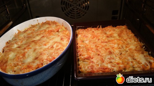 Я их укладываю штапелями и сверху морковь тушённая или ещё какие овощи и сыром всё посыпаю.