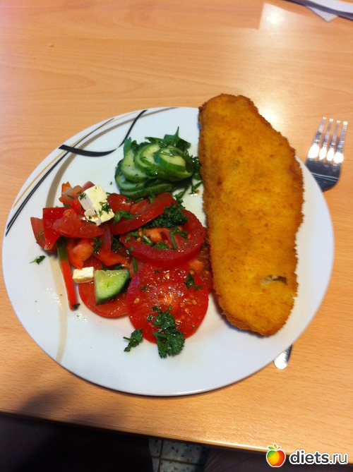 3. рыба в тесте, помидоры, огурцы, сладкий перец