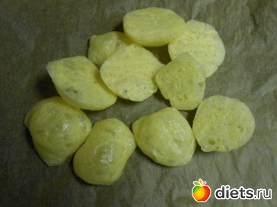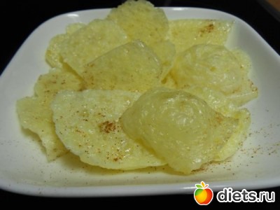 Запах и вкус отдаленно напоминают жаренное сало (мне так кажется), но жира в них совсем нет. Получаются солоноватые, но настоящие чипсы ведь тоже соленые.