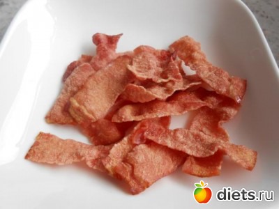 Чипсы из тоненькой копченой ветчины 3% жирности (не знаю, как правильно называется). Очень вкусно получилось и хрустяще!