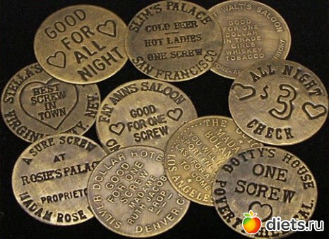 4. Жетоны для получения услуг в борделях Дикого Запада - Такими жетонами расплачивались в борделях за пикантные услуги в XIX веке в США. Использование жетонов было удобным для владельцев заведений — это сводило к минимуму возможность женщин оставить себе побольше денег и раскрутить клиента в процессе.