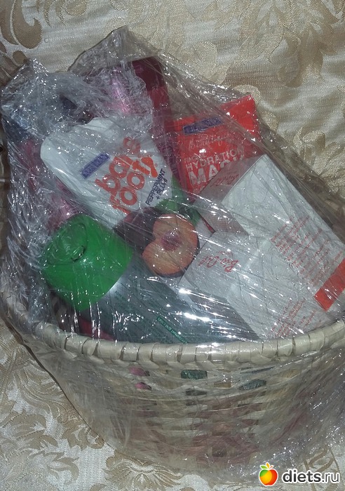 Не повредился ни один тюбик, не вылилось ни капли средства, и ни одна коробочка не помялась. Симпатичная корзинка в комплекте очень порадовала. Но как порадовал сам приз, это не описать словами!