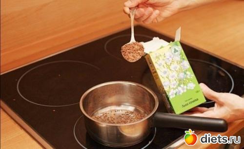 1 ст. Ложку льняного семени следует залить стаканом кипятка, оставить отвар на слабом огне плотно прикрыв крышкой на 30 мин., остудить.