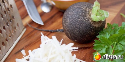 Небольшой совет: если черная редька сильно горчит, нужно залить ее холодной водой и оставить на 20-30 минут.