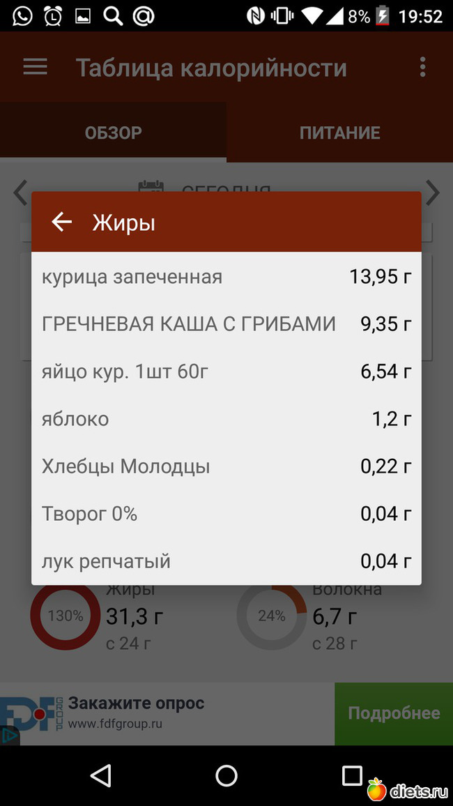 Сегодня был первый день пп, вроде питалась хорошо, но ккал всего 860, но количество грамм продуктов весьма приблизительное, может и больше, сейчас на ужин ела овощной салат, лежу довольная к верху пузом) воды пока выпила немного 1300 из 2 литров, отзанималась Джиллиан, завтра перехожу на 2 уровень. А вот жиров оказалось больше нормы, белков и углеводов не хватает, что делать в таком случае?