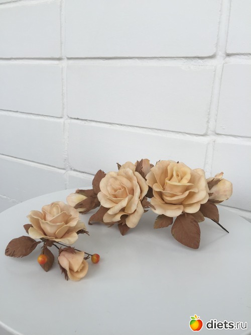В третью розу кремового цвета (или цвета шампанского) с коричневыми листиками я влюбилась полностью и бесповоротно