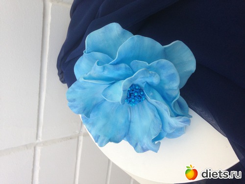 Большая роза 15 см , прикалываю на плечо темно синего платья ...с большим декольте .При открытом окне машины ...все взгляды мои