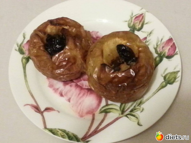 Не поздоровилось 2 бананам, 1 апельсину, 2 долькам ананаса и 3 запеченым яблокам, фаршированным изюмом с капелькой меда. Получился вкусный эксперимент. От меда можно кстати отказаться, и без него получилось бы очень даже сладенько.