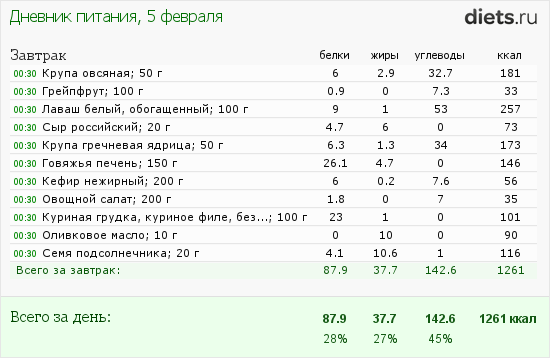Калорийность продуктов