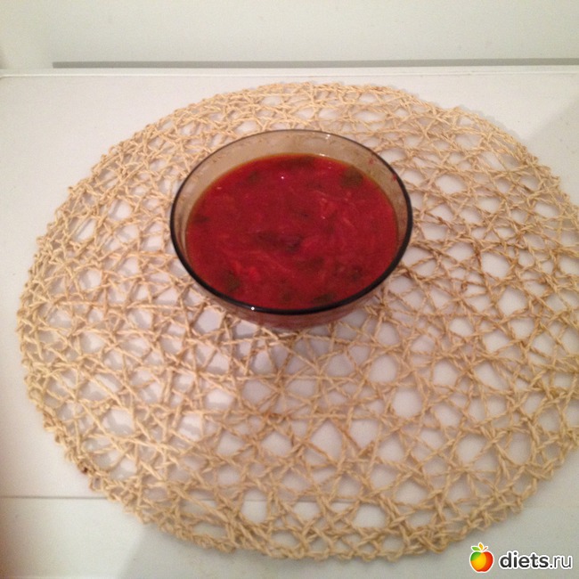 надо будет борщик попробовать) хотя я фасоль разлюбила. еще в детсве) и у вас такие подставочки прикольные)) сами вязали?? ( ну те на которых тарелки с едой стоят)