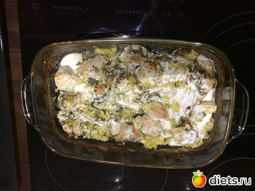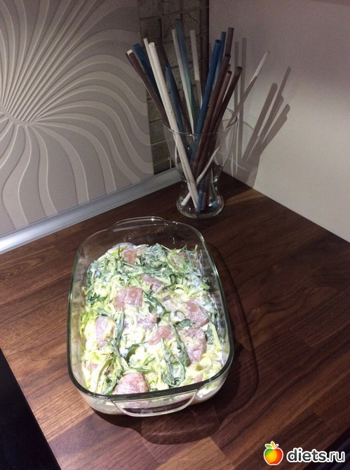 Диетическая индейка с кабачком, рукколой, розмарином, запеченые в йогурте.
