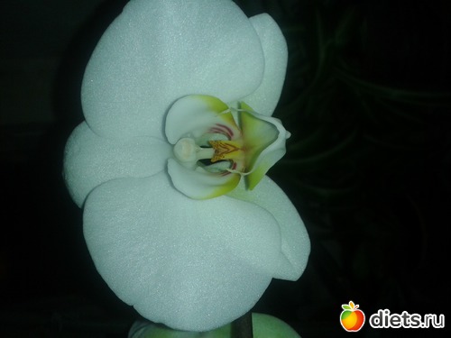 Эту белую орхидею мне подарили в прошлом году на день рождения. У меня этого сорта раньше не было и я не имела понятия: будет ли она цвести повторно. Когда она отцвела, то пошла отдыхать. С апреля по октябрь она постояла, поразмышляла и сдалась. Весь ноябрь и декабрь она была сверху донизу осыпана некрупными белыми цветами. Но вот опять (сорри) я ее не сфотографировала. Это уже остатки роскоши, которые расцвели чуть позже на другой ветке.