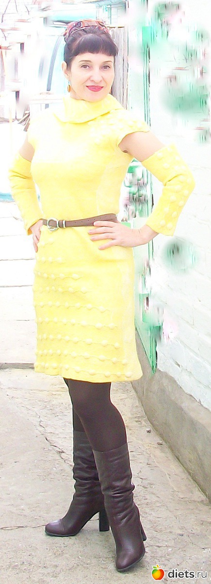 Платье твое желтое очень понравилось,только со светлыми колготками и без рукавов наверное лучше...Хотя и с рукавами как то креативно смотрится...
