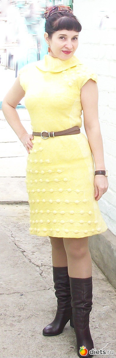 Жаль... По-моему, платье такого фасона было бы лучше сделать из чего-то легкого, из хлопка. Но из хлопка не валяют.