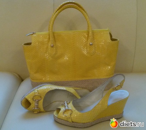 Это точно. Сумка и босоножки из питона ярко-желтого цвета итальянской фирмы Lorbac. Очень такие... взгляд притягивающие. Завтра когда будет светло я их для тебя сфоткаю. Но всю одежду - сорри - не буду. Меня тема с украшениями доконала. Только и занималась фотографированием. Я там шарфики еще месяц назад обещала нафоткать. Тоже неизвестно когда сделаю (хотя сделаю если обещала).