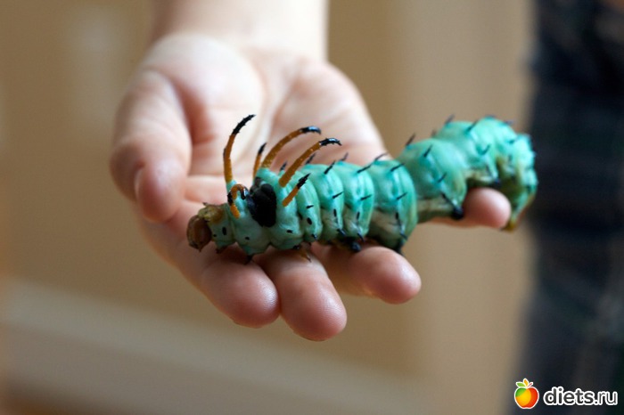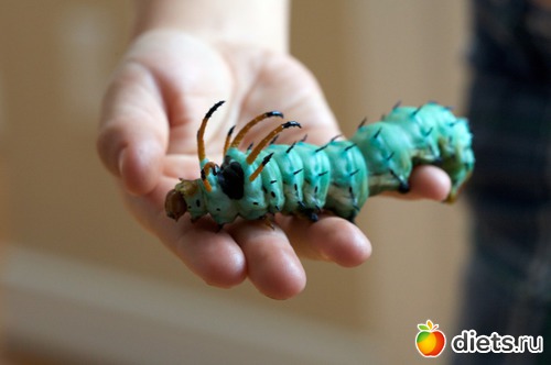 Повар начинает вокруг нас прыгать и суетиться. Через 5 минут приносят большое, накрытое блюдо. Мы в предвкушении переглянулись. Шеф-повар с загадочным лицом потянулся к крышке блюда...мы затаили дыхание...смотрим на тарелку, а там - в залежах овощей, травок и пряностей... - ползает здоровая, сантиметров в 15, жирная гусеница.