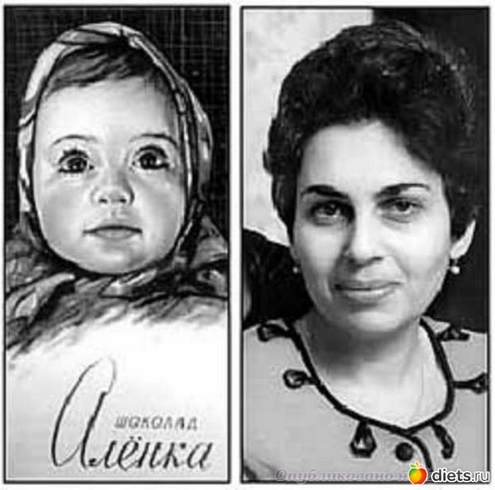 Правда, для шоколадной обертки фотографию немного «подрисовали»: девочке изменили цвет глаз с карего на голубой, немного удлинили лицо, подрумянили щёки, а губы сделали более припухлыми. Так, в 1966 году появилась упаковка для шоколада, ставшего узнаваемым не только в СССР, но и за его пределами. Кстати, эти незамысловатые трансформации спасли в 2000 году фабрику «Красный октябрь» от выплаты Елене Геринас суммы в 5 миллионов рублей. Она подала иск в суд с требованием выплатить ей указанную сумму за то, что ее фото использовалось на обертке столько лет. Судьи постановили, что образ на этикетке - собирательный. Сегодня Елена Геринас живет в подмосковных Химках. Она замужем и воспитывает двоих детей. По специальности Елена фармацевт.