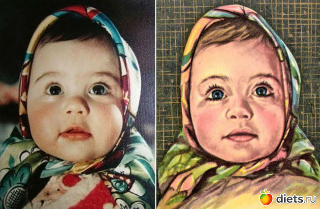 Супруга Геринаса сфотографировала девочку в 1960 году, когда ей исполнилось 8 месяцев. В 1962 году этот портрет был напечатан в журнале «Здоровье». А когда в 1965 году «Вечерней Москве» был объявлен конкурс на упаковку для шоколада, снова вспомнили об этом фото.