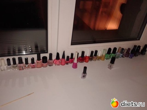 Сфоткала лаки малой...девочки, это ужас...их стооооолько оказывается, а пока лежали в ящике я и не знала, что у нас прям коллекция. я ж сама то не крашу ногти