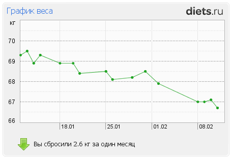 Ровно месяц прошел после праздничного новогоднего загула. 11 января мой вес был 69.7, сегодня - 66.7.