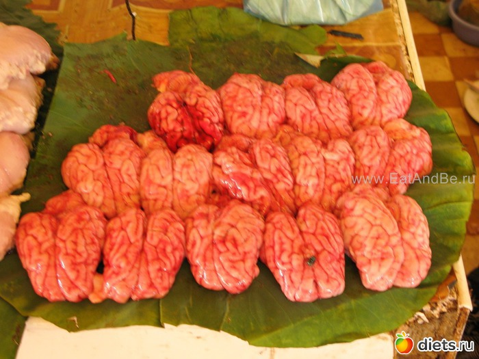 Обезьяньи мозги. Особенность блюда, что оно поедается в сыром виде прямо из черепной коробки живой еще мартышки. Помните каннибала Лектора? Это что-то вроде. Живую обезьянку поят водкой, фиксируют голову несчастной в специальной дырке в столе, после аккуратно сверлят в черепе отверстие и выколупывают мозги из яростно орущей обезьяны. Это, кстати, блюдо для избранных – им питался Уго Чавес и Мао Цзе Дун. Считалось, что мозги обезьяны дарят ум и молодость. Если это и правда так, я согласна быть старой дурой. Еще не стошнило? Тогда идем дальше.