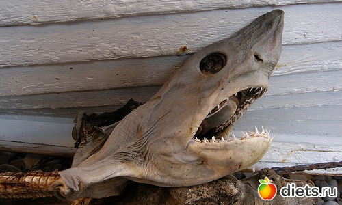 Хакарл – гнилая акула. Эта еда подается к новогоднему столу у Исландцев. Вонища, по рассказам, невообразимая. Для блюда годится туша гренландской акулы – в свежем виде ее мясо ядовито, а после гниения – самое оно. Полное несмываемого аромата и вкуса. Вы, кстати, можете выбрать между гнилыми мышцами и гнилым желудком вонючей твари.