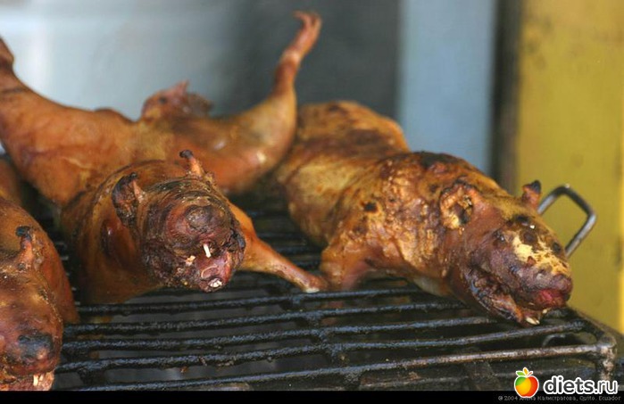Морские свинки и крысы. Читайте, читайте – еще пригодится! Эти блюда популярны в Парагвае, Перу, Японии. Они очень полезны, богаты белком и улучшают цвет лица. Можно приготовить и фаршированную крысу, и вяленую, и тушеную. Страшно вспомнить, но я, влюбившись на 2 курсе мединститута в перуанца, всерьез собиралась на землю инков и выискивала в сети рецепты блюд из крысятины. Готовилась.