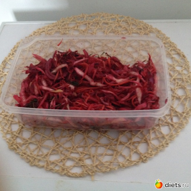 Перекус в 12-30: Салат "Похудейка" (капуста, морковь, лук репчатый, свёкла, яблоко, чеснок, укроп, кинза, сок лимона, подсолнечное масло, вода)
