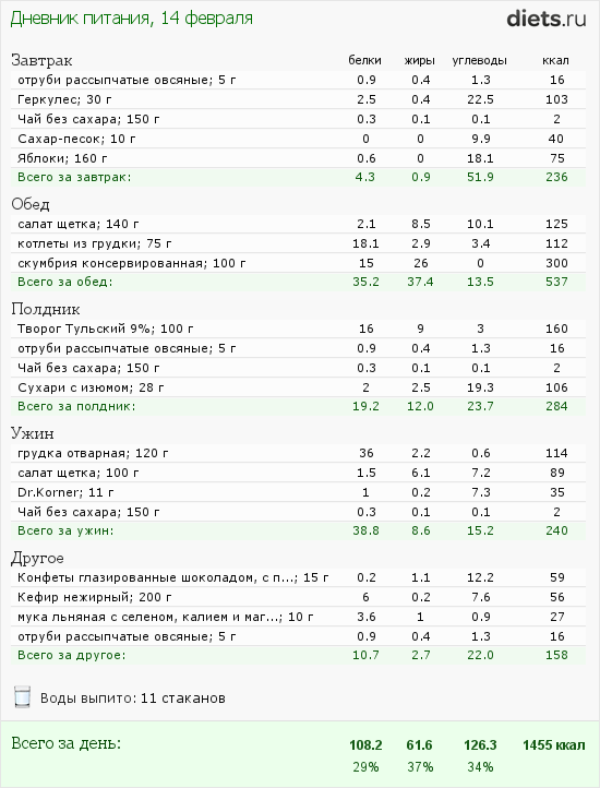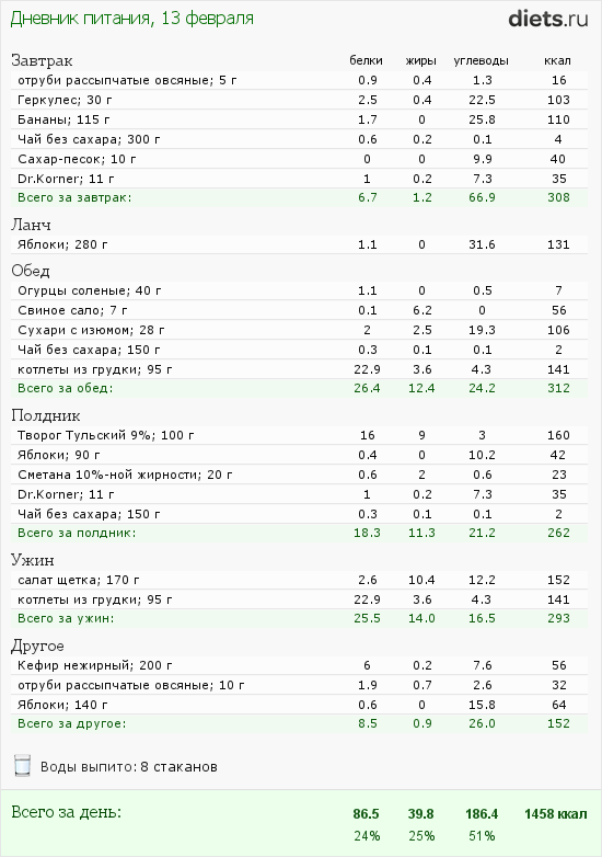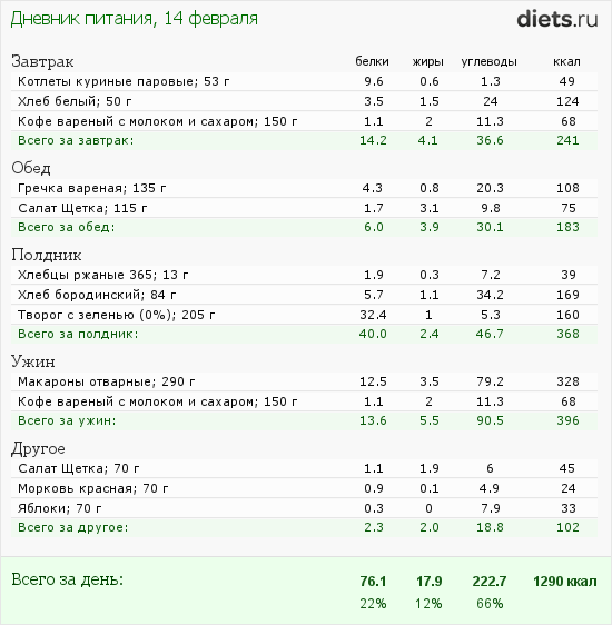 кажется очень правильное сочетание БЖУ....незнаю,а вот из коридора не вышла и даже меньше было,правильно?