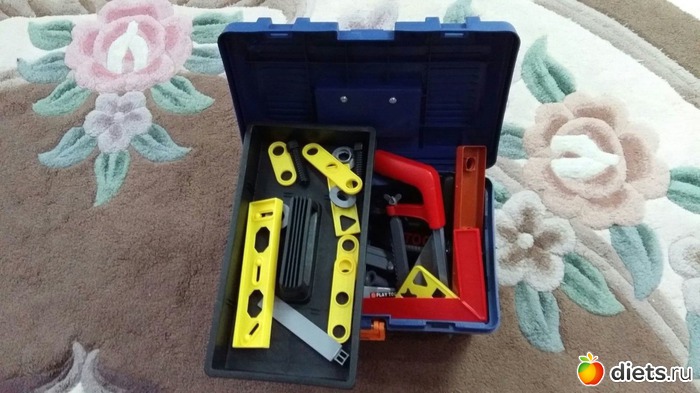 а еще набор инструментов очень хотел, это ему Алина привезла, прям как настоящий, теперь у нас в доме все отремонтировано