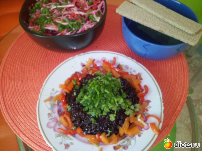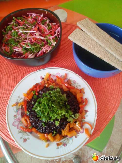 Получилось в виде ризотто, так как вода немного не вся впиталась. Вкус - ПРЕВОСХОДНЫЙ! Гораздо мягче обычного белого, и тем более бурого или дикого риса. В сочетании с тушеным перчиком - сказка.