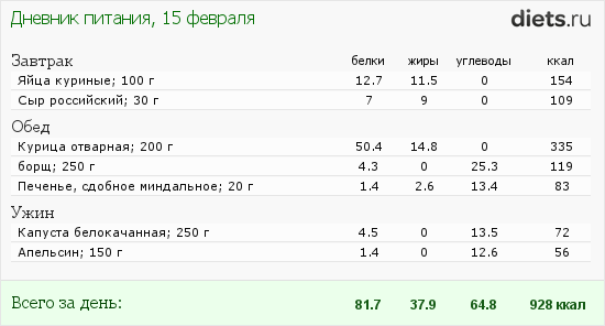 расчет калорий.
