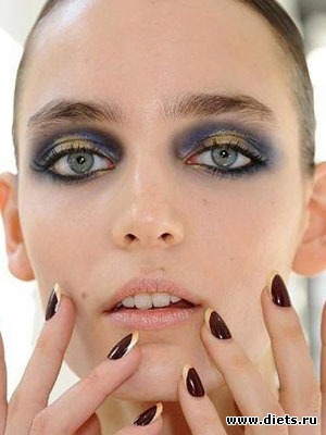 - Следует научиться сочетать металлизированные оттенки с основными. «Металлик» лучше использовать в качестве окантовки. Модно как золото, так и серебро.