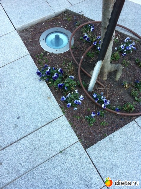 Пока жду свою подвозку сфоткала цветочки. Круглая хрень - это подсветка, а шланг - это подводка воды, к каждому дереву отдельно, конкретно и персонально)