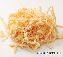 И вот тут описывается один из самых интересных этапов обработки: кальмар пересыпается глютаматом натрия. Для этого полученный продукт – стружку, щупальца, соломку, - раскладывают на специально подготовленной поверхности или загружают в смеситель, добавляют определённое количество глютамата и перемешивают. После этого продукт расфасовывают в пакеты, и он считается готовым к употреблению.