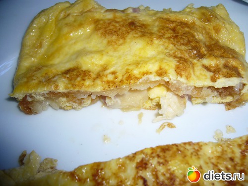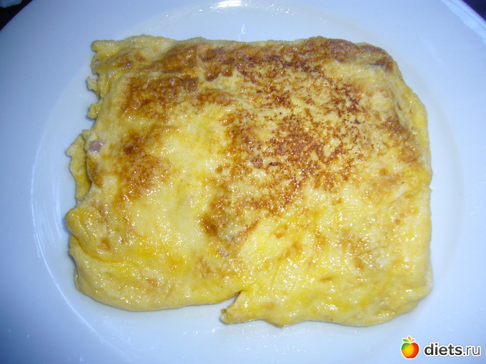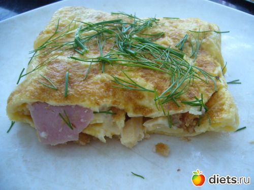 12-00 омлет конвертиком в серединке немного гордона блю, сын принес из кафешки я позаимствовала половинку для начинки.. - новый рецептик, получилось очень вкусно, быстро и красиво, буду еще так делать с разной начинкой..
