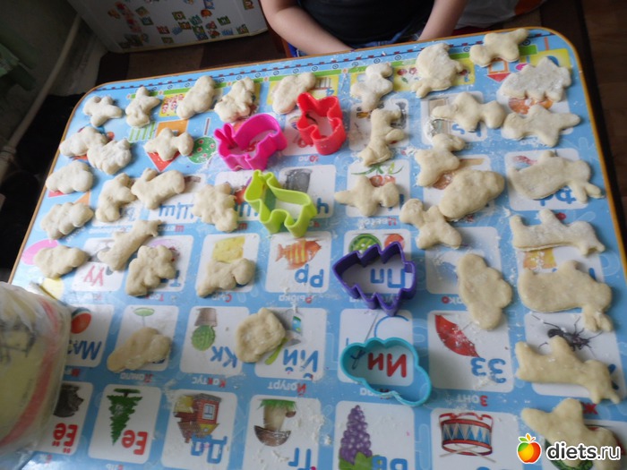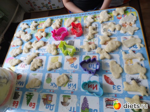 Достаем, раскатываем и вырезаем фигурки. По рецепту раскатывать до 0,5 мм. Я делала и тонкие и толстенькие, кому как нравится, пропекаются хорошо!!!