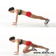 1. Примите исходное положение как для отжимания: обопритесь на вытянутые руки и пальцы ног. Тело должно представлять собой прямую линию.