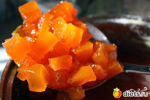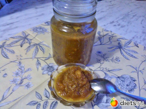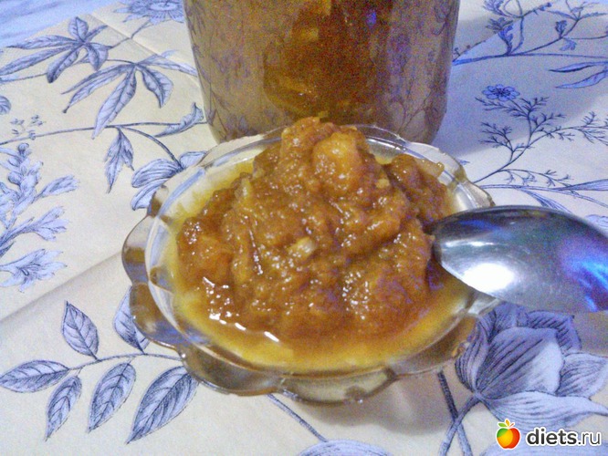 ! Сегодня я к вам, окутанная чарующим ароматом восточных специй. С самого утра наслаждаюсь сладко-пряным тыквенных вареньем. Это моё первое Дю-варенье и я спешу поделиться с вами этим рецептом блаженства. Хотя, как такового рецепта и нет... Была замороженная тыква, лимон и специи. Оттаявшую тыкву(500г) я положила в чугунок и поставила томится на медленный огонь, добавив 100 мл воды. В это время натерла лимонную цедру и выжала сок с этого лимона. Отдельно в 2 ст.л кипятка растворила 20 таблеток сахзама(это очень сладко). За это время тыква стала очень мягкой(разлезлась). К ней я добавила цедру и сок лимона, растворенный сахзам,1 ч.л молотого имбиря,0,5ч.л молотой гвоздики,1ч.л корицы. Всё хорошенько перемешала, подтушила ещё пару минут, выключила огонь и оставила остывать под крышкой. После переложила в баночку и поставила в холодильник. Напекла Дю-блинчиков и наслаждалась приготовленной вкусняшкой. А сейчас, после ужина, смаковала варенье, запивая мятным чаем. При чем, что стало для меня открытием, запаха и вкуса тыквы просто нет. Девочки, это действительно ВКУСНООО!!! Следующая баночка будет ванильным вареньем, ммммм!!!