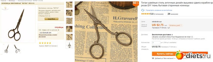 Было обидно платить почти 200 грн за винтажные ножницы, когда на сайте точно такие же (они уникальные в своем роде, спутать их нельзя) за 70 грн, только подождать надо.