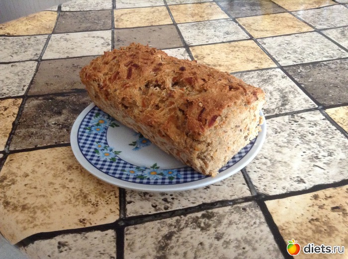 Хлебушек этот кончился сегодня, теперь новый...) с жареным лучком и морковкой, из трех видов муки, с льняными семками и отрубями...) и с травами тимьяном, базиликом и орегано - очень ароматный, балдею...)))