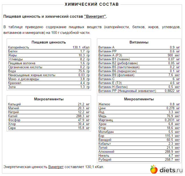 Diets.ru Винегрет и его калорийность